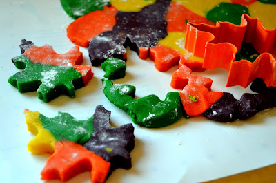 I teased some of you on Facebook recently with these gorgeous and festive sugar cookies. I saw the idea on Country Living, but they failed to explain on how create these colorful centerpieces. So...I just figured it out myself. I was really excited about how these came out! I never thought about dyeing dough before, but it worked perfectly and didn't effect the texture or taste at all. A Holiday Home run!
