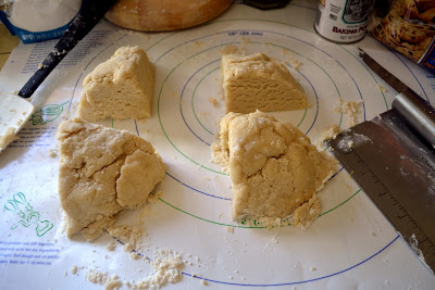 4) Using floured hands, divide dough into quarters.
