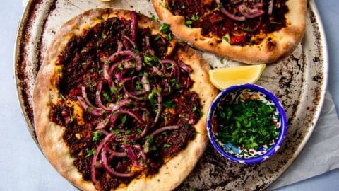 Lahmacun is one of my favorite Turkish recipes. Usually made with meat, this vegan recipe showcases all of the same bold Mediterranean flavors but made with a hearty vegetable mixture, tangy pomegranate molasses and warm spices. Top the vegan Turkish pizza with sumac onions, lemon and fresh herbs for a fresh pop of flavor. There … Continue reading Vegan Turkish Pizza (Lahmacun)